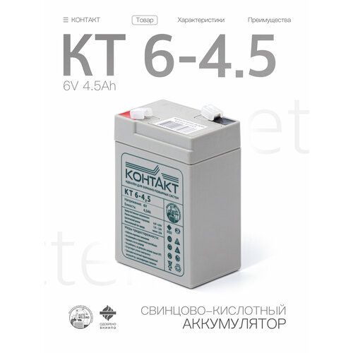 Найти - Аккумулятор (батарея) Контакт КТ 6-4,5 (6В 4,5Ач / 6V 4,5AH)