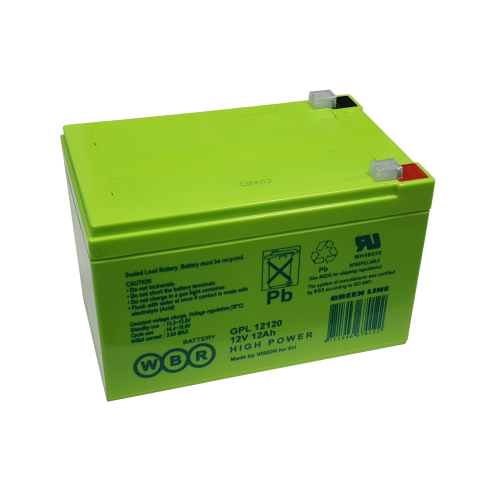 WBR серии GPL 12120 - это герметизированные свинцово-кислотные аккумуляторные батареи, выполненные по технологии AGM. Они обеспечивают увеличенный 12-летний срок службы в буферном режиме или 260 циклов заряда-разряда в циклическом режиме при 100% разряде.