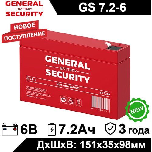 Найти - Аккумулятор General Security GS 7.2-6 (6V / 7.2Ah) для детского электротранспорта, ИБП, аварийного освещения, кассового терминала, GPS оборудованиям