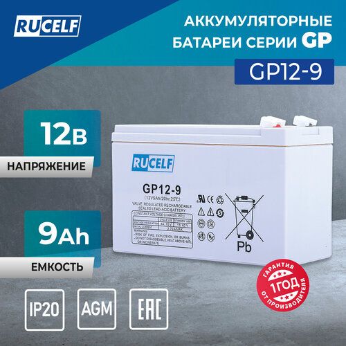 Найти - Аккумулятор свинцово-кислотный 12V 9Ah RUCELF GP12-9 батарея для ИБП и UPS, пожарной/охранной сигнализации, видеонаблюдения, освещения, детского электромобиля, эхолота, касс