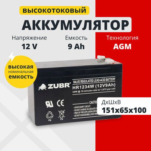Аккумулятор для ибп ZUBR HR AGM 12v 9ah – устройство, предназначенное для обеспечения стабильного электропитания при отключении основного источника энергии. Бесперебойник для дома, компьютера играет важную роль в защите оборудования от потерь данных и повреждений, вызванных внезапными сбоями электроснабжения. Одним из лидеров на рынке стационарных аккумуляторов 12 вольт является серия ZUBR, гарантирующая надежность и эффективность в работе источников бесперебойного питания. В аккумуляторе AGM 12В электролит абсорбирован в стекловолоконном сепараторе, что обеспечивает герметичность, устойчивость к вибрациям и низкое электрическое сопротивление. Они отличаются высокой стойкостью к глубокому разряду, большим количеством циклов перезаряда, прочным корпусом. Аккумуляторы для детской машины, мотоцикла, электромобиля являются безопасными для человека и окружающей среды, поскольку не выделяют вредных паров и не подвержены вытеканию электролита. Еще одно преимущество аккумуляторов для машинки на радиоуправлении – их можно монтировать в произвольном положении под наклоном, даже в перевернутом состоянии. Аккумуляторы для бесперебойника не требуют обслуживания, рекомендованы для использования как в буферном, так и циклическом режимах. Акб для источников резервного питания являются универсальными: кассовые аппараты, кассы, медицинское, торговое оборудование, пк, компьютеры, газовые и электро котлы отопления, аварийное освещение, системы видеонаблюдения, охранная пожарная сигнализация, извещатель, телекоммуникации, связь, промышленные установки, электропастухи, эхолоты 12v, насосы, детские машинки, скутеры, квадроциклы, электромашины, игрушки для ребенка, инвалидные коляски, фонари, фонарики, весы, опрыскиватели садовые умница, осветительные и переносные приборы, солнечные панели и батареи, инкубаторы. Регулярно проверяйте состояние и уровень заряда акб для ибп. Перед покупкой уточните рабочие параметры ранее установленной свинцово-кислотной батареи.