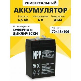 НАЙТИ ВЫГОДНЕЕ - Аккумулятор для ибп 6v 4.5 Ah NPP AGM F1/T1 акб эхолота, весов, машинок 70x48x106 мм