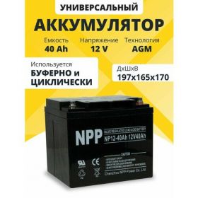 Аккумулятор для ибп NPP AGM 12v 40ah – устройство, предназначенное для обеспечения стабильного электропитания при отключении основного источника энергии. Бесперебойник для дома, компьютера играет важную роль в защите оборудования от потерь данных и повреждений, вызванных внезапными сбоями электроснабжения. Одним из лидеров на рынке стационарных аккумуляторов 12 вольт является серия NPP, гарантирующая надежность и эффективность в работе источников бесперебойного питания. В аккумуляторе AGM 12В электролит абсорбирован в стекловолоконном сепараторе, что обеспечивает герметичность, устойчивость к вибрациям и низкое электрическое сопротивление. Они отличаются высокой стойкостью к глубокому разряду, большим количеством циклов перезаряда, прочным корпусом. Аккумуляторы для детской машины, мотоцикла, электромобиля являются безопасными для человека и окружающей среды, поскольку не выделяют вредных паров и не подвержены вытеканию электролита. Еще одно преимущество аккумуляторов для машинки на радиоуправлении – их можно монтировать в произвольном положении под наклоном, даже в перевернутом состоянии. Аккумуляторы для бесперебойника не требуют обслуживания, рекомендованы для использования как в буферном, так и циклическом режимах. Акб для источников резервного питания являются универсальными: медицинское, торговое оборудование, пк, компьютеры, газовые и электро котлы отопления, аварийное освещение, системы видеонаблюдения, охранная пожарная сигнализация, извещатель, телекоммуникации, связь, промышленные установки, насосы, детские машинки, скутеры, квадроциклы, электромашины, игрушки для ребенка, инвалидные коляски, опрыскиватели садовые умница, осветительные и переносные приборы, солнечные панели и батареи. Регулярно проверяйте состояние и уровень заряда акб для ибп. В нашем магазине можно приобрести подходящее зарядное устройство. Перед покупкой уточните рабочие параметры ранее установленной свинцово-кислотной батареи.