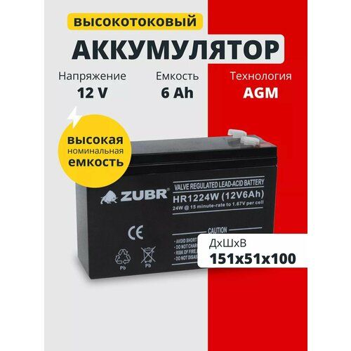 Найти - Аккумулятор для ибп 12v 6 Ah ZUBR AGM F2/T2 акб игрушечной машины, весов 151x51x100 мм