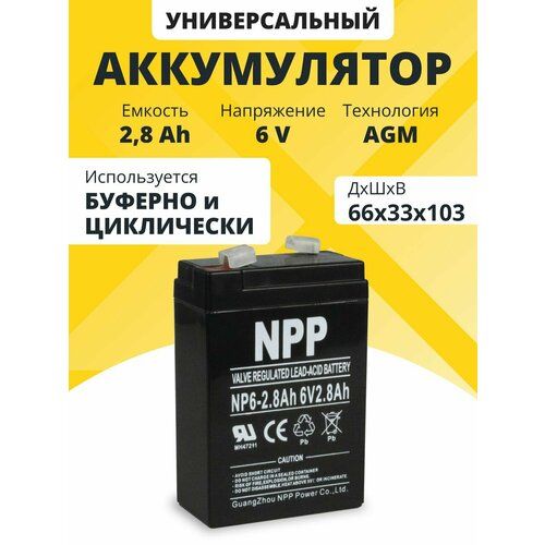 Найти - Аккумулятор 6v 2,8 Ah NPP AGM F1/T1 акб для кассы, фонаря, весов 66x33x103 мм