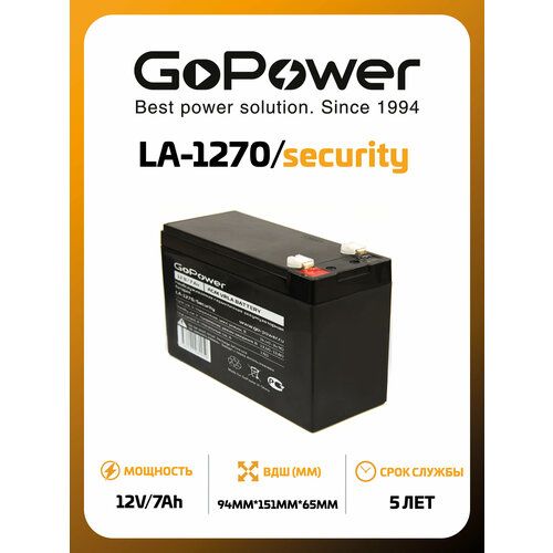 Аккумулятор свинцово-кислотный GoPower LA-1270/security 12V 7Ah клеммы T1/ F1 (1/5) GoPower 00-00021454
