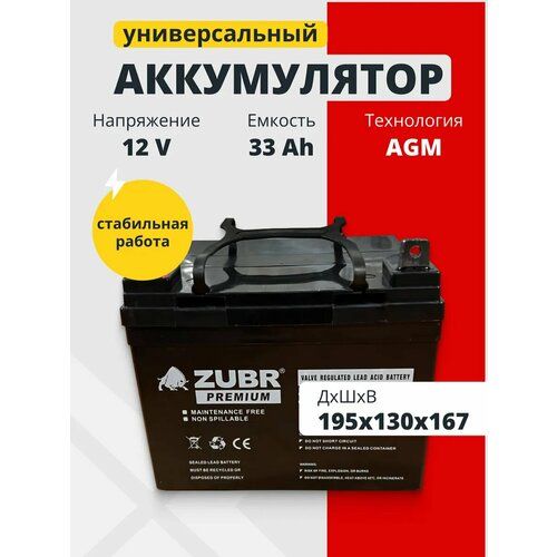 Аккумулятор для ибп ZUBR GP AGM 12v 33ah – устройство, предназначенное для обеспечения стабильного электропитания при отключении основного источника энергии. Бесперебойник для дома, компьютера играет важную роль в защите оборудования от потерь данных и повреждений, вызванных внезапными сбоями электроснабжения. Одним из лидеров на рынке стационарных аккумуляторов 12 вольт является серия ZUBR, гарантирующая надежность и эффективность в работе источников бесперебойного питания. В аккумуляторе AGM 12В электролит абсорбирован в стекловолоконном сепараторе, что обеспечивает герметичность, устойчивость к вибрациям и низкое электрическое сопротивление. Они отличаются высокой стойкостью к глубокому разряду, большим количеством циклов перезаряда, прочным корпусом. Аккумуляторы для детской машины, мотоцикла, электромобиля являются безопасными для человека и окружающей среды, поскольку не выделяют вредных паров и не подвержены вытеканию электролита. Еще одно преимущество аккумуляторов для машинки на радиоуправлении – их можно монтировать в произвольном положении под наклоном, даже в перевернутом состоянии. Аккумуляторы для бесперебойника не требуют обслуживания, рекомендованы для использования как в буферном, так и циклическом режимах. Акб для источников резервного питания являются универсальными: медицинское, торговое оборудование, пк, компьютеры, газовые и электро котлы отопления, аварийное освещение, системы видеонаблюдения, охранная пожарная сигнализация, извещатель, телекоммуникации, связь, промышленные установки, электропастухи, детские машинки, скутеры, квадроциклы, электромашины, игрушки для ребенка, инвалидные коляски, фонари, фонарики, опрыскиватели садовые умница, осветительные и переносные приборы, солнечные панели и батареи. Регулярно проверяйте состояние и уровень заряда акб для ибп. В нашем магазине можно приобрести подходящее зарядное устройство. Перед покупкой уточните рабочие параметры ранее установленной свинцово-кислотной батареи.