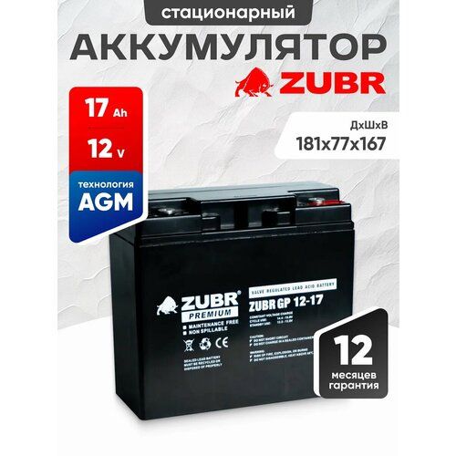 Аккумулятор для ибп ZUBR GP AGM 12v 17ah – устройство, предназначенное для обеспечения стабильного электропитания при отключении основного источника энергии. Бесперебойник для дома, компьютера играет важную роль в защите оборудования от потерь данных и повреждений, вызванных внезапными сбоями электроснабжения. Одним из лидеров на рынке стационарных аккумуляторов 12 вольт является серия ZUBR, гарантирующая надежность и эффективность в работе источников бесперебойного питания. В аккумуляторе AGM 12В электролит абсорбирован в стекловолоконном сепараторе, что обеспечивает герметичность, устойчивость к вибрациям и низкое электрическое сопротивление. Они отличаются высокой стойкостью к глубокому разряду, большим количеством циклов перезаряда, прочным корпусом. Аккумуляторы для детской машины, мотоцикла, электромобиля являются безопасными для человека и окружающей среды, поскольку не выделяют вредных паров и не подвержены вытеканию электролита. Еще одно преимущество аккумуляторов для машинки на радиоуправлении – их можно монтировать в произвольном положении под наклоном, даже в перевернутом состоянии. Аккумуляторы для бесперебойника не требуют обслуживания, рекомендованы для использования как в буферном, так и циклическом режимах. Акб для источников резервного питания являются универсальными: кассовые аппараты, кассы, медицинское, торговое оборудование, пк, компьютеры, газовые и электро котлы отопления, аварийное освещение, системы видеонаблюдения, охранная пожарная сигнализация, извещатель, телекоммуникации, связь, промышленные установки, электропастухи, эхолоты 12v, насосы, детские машинки, скутеры, квадроциклы, электромашины, игрушки для ребенка, инвалидные коляски, фонари, фонарики, весы, опрыскиватели садовые умница, осветительные и переносные приборы, солнечные панели и батареи. Регулярно проверяйте состояние и уровень заряда акб для ибп. Перед покупкой уточните рабочие параметры ранее установленной свинцово-кислотной батареи.