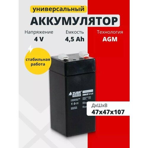 Найти - Аккумулятор 4v 4.5Ah ZUBR AGM F1/T1 для кассы, эхолота, фонаря, весов