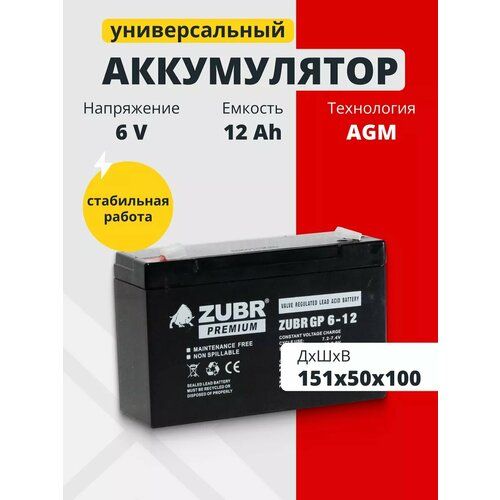 Найти - Аккумулятор для ибп 6v 12Ah ZUBR AGM F1/T1 детской машинки, мотоцикла