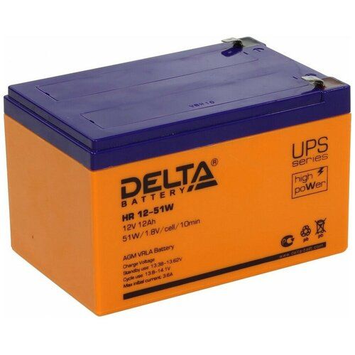 Герметизированный VRLA cвинцово-кислотный аккумулятор Delta HR 12-51 W напряжением 12В и емкостью 12Ач изготовлен по технологии AGM (с микропористым заполнителем, пропитанным электролитом). Корпус изготовлен из негорючего ABS пластика. Срок службы аккумулятора достигает 8 лет. Аккумулятор относится к линейке DELTA UPS series и предназначен для работы в системах бесперебойного питания (ИБП), системах связи, ЦОД. Обладает низким внутренним сопротивлением и высокой энергоотдачей.