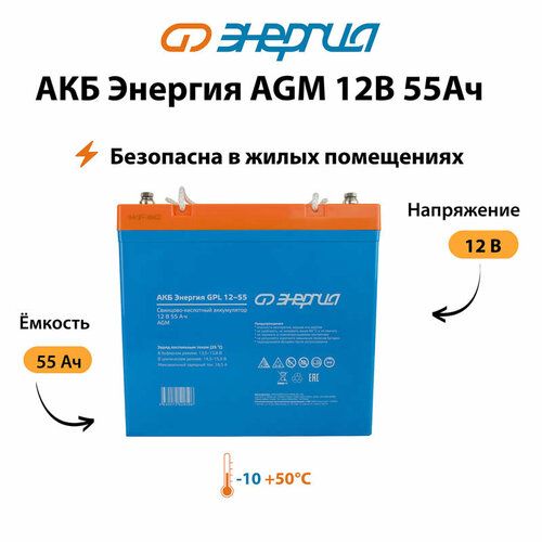 НАЙТИ ВЫГОДНЕЕ - Аккумулятор для ИБП Энергия AGM 12v 55Ah