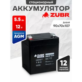 Аккумулятор для ибп ZUBR GP AGM 12v 5,5ah – устройство, предназначенное для обеспечения стабильного электропитания при отключении основного источника энергии. Бесперебойник для дома, компьютера играет важную роль в защите оборудования от потерь данных и повреждений, вызванных внезапными сбоями электроснабжения. Одним из лидеров на рынке стационарных аккумуляторов 12 вольт является серия ZUBR, гарантирующая надежность и эффективность в работе источников бесперебойного питания. В аккумуляторе AGM 12В электролит абсорбирован в стекловолоконном сепараторе, что обеспечивает герметичность, устойчивость к вибрациям и низкое электрическое сопротивление. Они отличаются высокой стойкостью к глубокому разряду, большим количеством циклов перезаряда, прочным корпусом. Аккумуляторы для детской машины, мотоцикла, электромобиля являются безопасными для человека и окружающей среды, поскольку не выделяют вредных паров и не подвержены вытеканию электролита. Еще одно преимущество аккумуляторов для машинки на радиоуправлении – их можно монтировать в произвольном положении под наклоном, даже в перевернутом состоянии. Аккумуляторы для бесперебойника не требуют обслуживания, рекомендованы для использования как в буферном, так и циклическом режимах. Акб для источников резервного питания являются универсальными: кассовые аппараты, кассы, медицинское, торговое оборудование, пк, компьютеры, аварийное освещение, телекоммуникации, связь, промышленные установки, электропастухи, эхолоты 12v, детские машинки, скутеры, квадроциклы, электромашины, игрушки для ребенка, фонари, фонарики, весы, опрыскиватели садовые умница, осветительные и переносные приборы, солнечные панели и батареи. Регулярно проверяйте состояние и уровень заряда акб для ибп. В нашем магазине можно приобрести подходящее зарядное устройство. Перед покупкой уточните рабочие параметры ранее установленной свинцово-кислотной батареи.