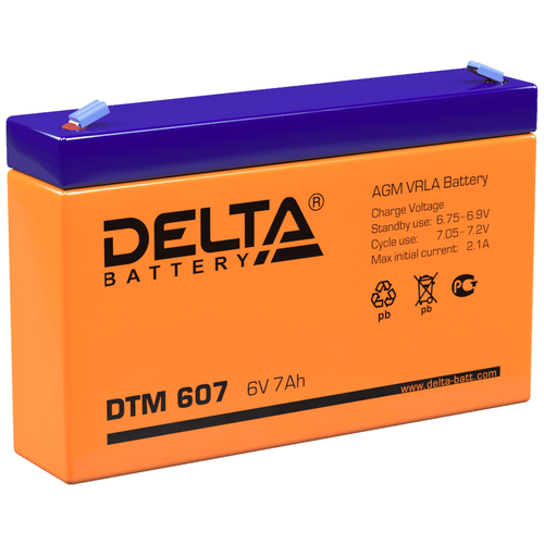 Аккумуляторная батарея Delta DTM 607 - свинцово-кислотный аккумулятор серии, предназначенной для эксплуатации, как в буферном, так и в циклическом режимах работы. Служит для использования в переносных и портативных приборах, благодаря внутреннему сопротивлению идеально используется в источниках резервного энергоснабжения и блоках резервного питания.