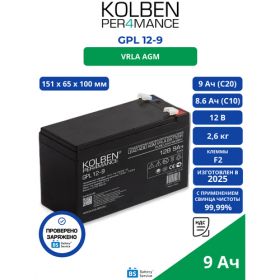 Найти - Аккумулятор KOLBEN PER4MANCE GPL 12-9 12В 9Ач 151x65x100 мм