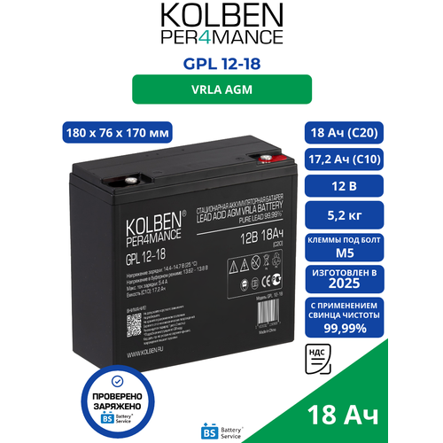 Найти - Аккумулятор KOLBEN PER4MANCE GPL 12-18 12В 18Ач 181x76x170 мм