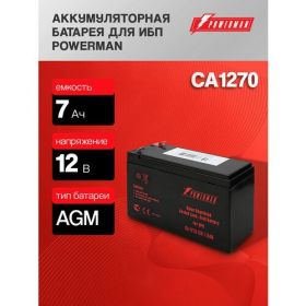 POWERMAN CA1270/UPS - cвинцово-кислотный герметизированный аккумулятор для ИБП изготовлен по технологии AGM (Absorbent Glass Mat).