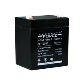 Security Force SF 12045 — необслуживаемая свинцово-кислотная батарея напряжением 12В и номинальной емкостью 4.5Ач. Модель оптимизирована для резервного и автономного энергообеспечения систем, для функционирования которых требуются малые токи. Установленная производителем на SF 12045 цена рассчитана с учетом технических параметров блока и прогнозированных сроков службы: при соблюдении условий эксплуатации ресурса АКБ хватает на 8 лет бесперебойной работы.