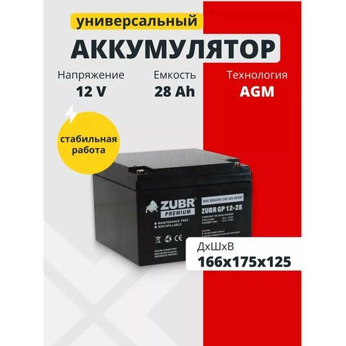 Аккумулятор для ибп 12v 28 Ah ZUBR AGM M5/T4 котлов, охранной системы