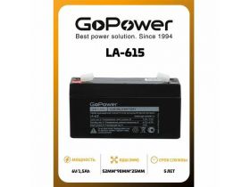 Аккумулятор свинцово-кислотный GoPower LA-615 6V 1.5Ah клеммы T1/ F1 103604145472