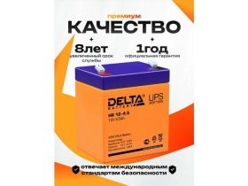 Аккумуляторная батарея DELTA HR 12-4.5 12В/4,5Ач V/Ah Тип AGM Клемма F1. Срок службы 8 лет. 103662522995