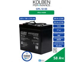 Аккумулятор KOLBEN PER4MANCE GPL 12-55 12В 55Ач 229x138x210 мм 4678775303