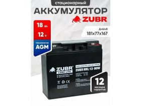 Аккумулятор для ибп 12v 18Ah ZUBR AGM T3/M5 акб котла, весов, электромобиля 181x77x167 мм 103338714922