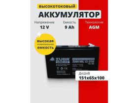Аккумулятор для ибп 12v 9Ah ZUBR HRL12-35W AGM F2/T2 детских машинок, весов 103802238517