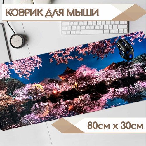 НАЙТИ ВЫГОДНЕЕ - Большой игровой коврик для мыши на тканевой основе 800х300х2 Сакура