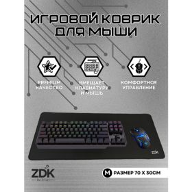 ZDK XGame - это коврик для мышки обеспечивающий достаточное пространство для мыши, клавиатуры и других предметов на рабочем столе. Он имеет превосходную поверхность для контроля, нескользящую резиновую основу и водоотталкивающее покрытие. Все это делает его идеальным выбором для игроков, которые используют низкое DPI или нуждаются в большом пространстве для маневрирования. Коврик выполнен в черном цвете. Длина 70 см, ширина 30 см, толщина 2 мм. Подложка из каучука обеспечит длительный срок службы коврика.