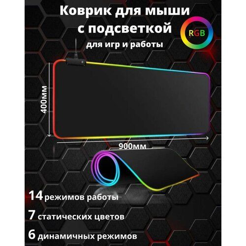 Игровой коврик с подсветкой RGB 900х400 мм - это высококачественный аксессуар для клавиатур и мышей, который станет незаменимым помощником в организации игрового и рабочего пространства.