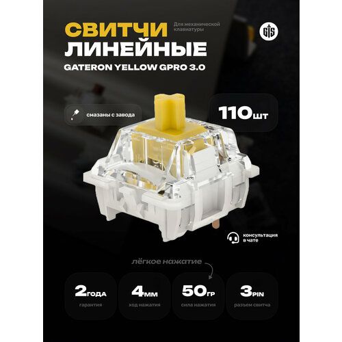 НАЙТИ ВЫГОДНЕЕ - Линейные механические переключатели (свитчи) Gateron Yellow GPro 3.0 (110 штук), 3-pin, смазаны, 50g