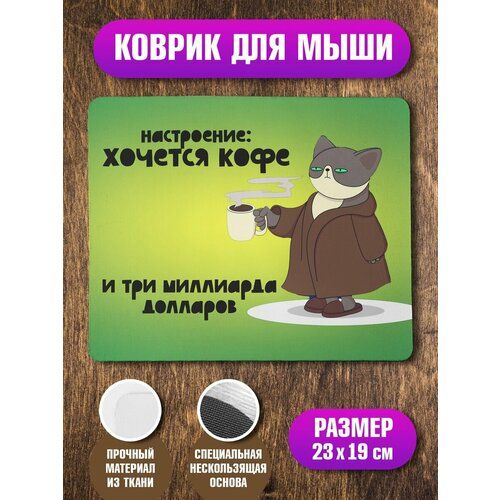 Найти - Коврик для компьютерной мыши Амбициозный кот, игровой, нескользящая основа, 23х19х0.4 см
