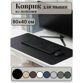 НАЙТИ ВЫГОДНЕЕ - Большой компьютерный коврик для мыши кожаный (экокожа) размером 800х400 мм, черный цвет