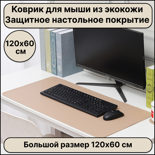 Найти - Большой компьютерный коврик для мыши кожаный (экокожа) размером 1200х600 мм, бежевый цвет