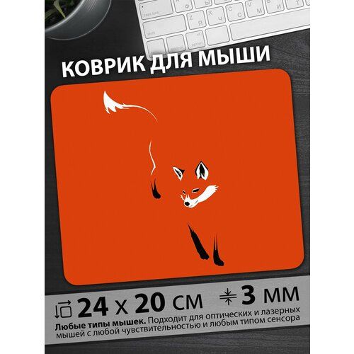 Найти - Коврик для мыши Яркий силуэт лисы на красном фоне с зелеными глазами