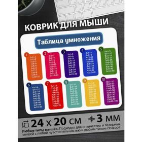 Найти - Коврик для мыши На помощь ученикам: яркая таблица умножения для легкости в обучении