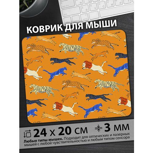 Найти - Коврик для мыши Энергия хищников на ярком оранжевом фоне с тиграми и львами