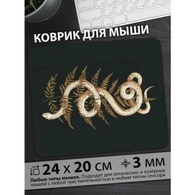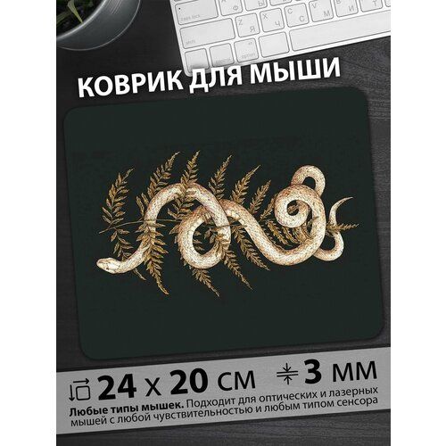 НАЙТИ ВЫГОДНЕЕ - Коврик для мыши Экзотическая белая змея извивающаяся среди златых папоротников на темном фоне