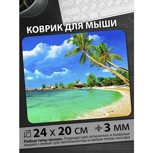 НАЙТИ ВЫГОДНЕЕ - Коврик для мыши Идеальный тропический пляж с белоснежным песком и пальмами