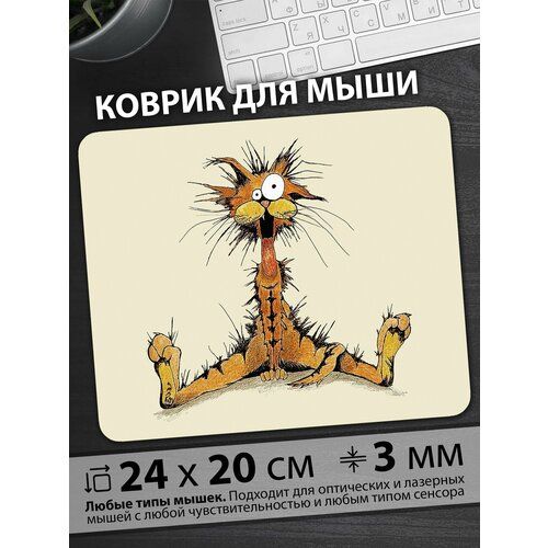 НАЙТИ ВЫГОДНЕЕ - Коврик для мыши Растрёпанный комичный кот в странной позе для максимального настроения