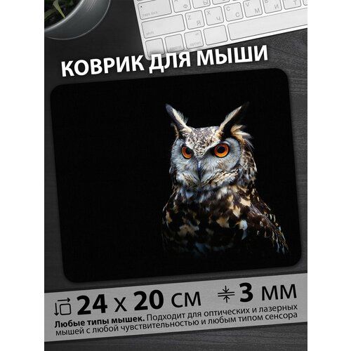 НАЙТИ ВЫГОДНЕЕ - Коврик для мыши Портрет совы на черном фоне с огненными глазами
