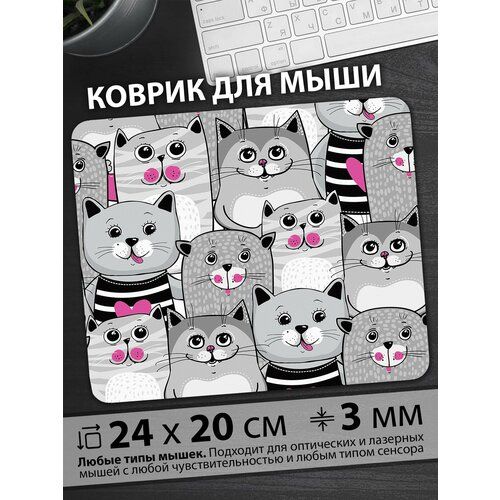 НАЙТИ ВЫГОДНЕЕ - Коврик для мыши Котики со смешными мордочками своими розовыми носами и большими глазами