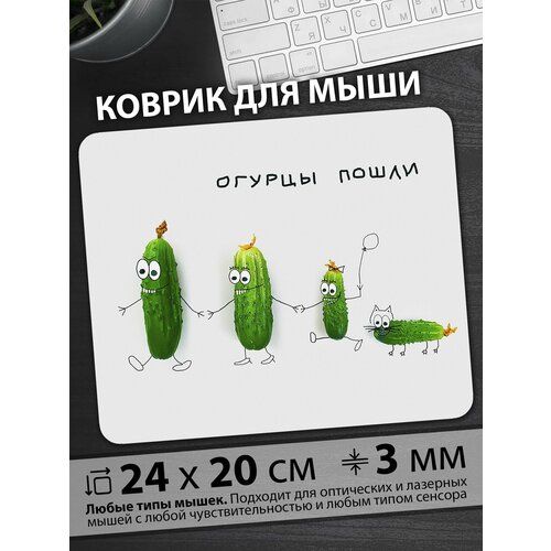 НАЙТИ ВЫГОДНЕЕ - Коврик для мыши Огурцы идут с котом: креативная семейная прогулка огурцов