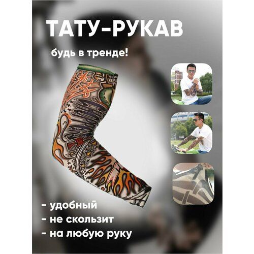 Рукав Тату поможет создаст дополнительную защита от УФ-лучей. Изготовлен из высокоэластичного хлопка, тонкого, мягкого на ощупь, высокой воздухопроницаемости, удобный, с высокой эластичной функцией, не скользит, и может использоваться как для мужчин, так и для женщин. Идеально подходит для занятий на открытом воздухе и в помещении, сохраняет прохладу в жаркое лето. Универсальный размер, который подходит как на подростковую руку, так и на женскую, и мужскую. Манжеты плотно удерживают рукав на руке, при этом не пережимая ее. Будь в тренде с тату рукавом.