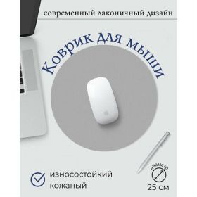 Найти - Коврик для мыши Homlove 25x25см, круглый, кожаный, водостойкий, 5мм, серый, 1шт