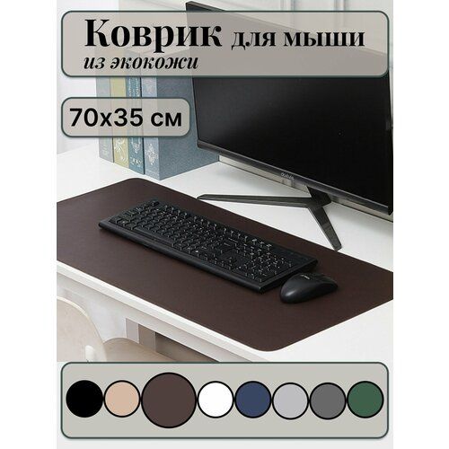 Найти - Большой компьютерный коврик для мыши кожаный (экокожа) размером 700х350 мм, коричневый цвет