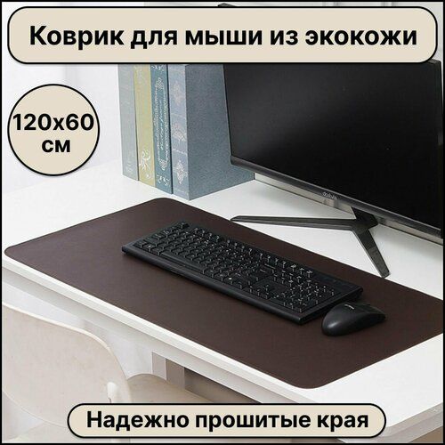 Найти - Большой компьютерный коврик для мыши кожаный (экокожа) размером 1200х600 мм, коричневый цвет