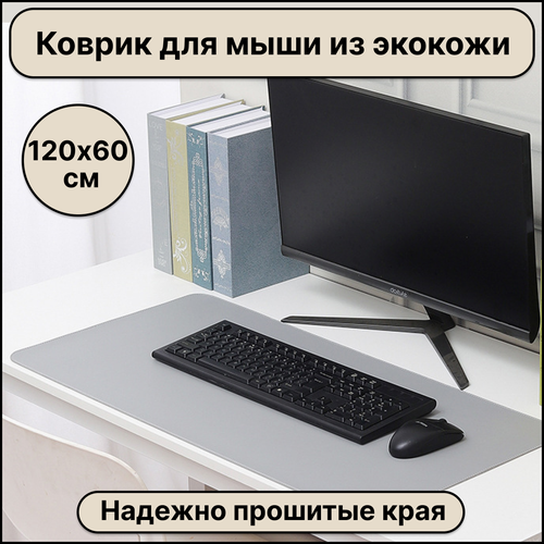 Найти - Большой компьютерный коврик для мыши кожаный (экокожа) размером 1200х600 мм, серый цвет