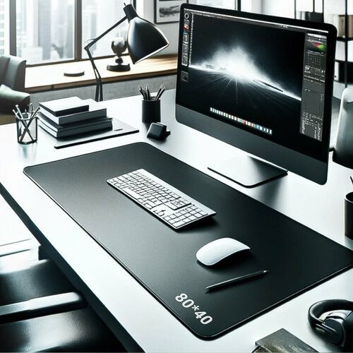 Большой игровой коврик (размер 80х40 см) для проводной и беспроводной компьютерной мыши с подсветкой и без - универсальный аксессуар, который позволит организовать работу за компьютером или ноутбуком максимально удобно. Тактильно приятная для рук противоскользящая прорезиненная поверхность выполнена в минималистичном дизайне. Однотонная подкладка для рабочего столика с термически обработанным тканевым покрытием не скользит, не отвлекает внимание и позволяет сосредоточиться на увлекательной игре или важной работе. Резиновая настольная защитная подставка легко моется и может стать универсальной защитой для детского коврика, спасательным водонепроницаемым покрытием для увлеченного геймера. Тонкая подкладка прямоугольной формы с закругленными углами плотно фиксируется на поверхности стола и удобна для детей и взрослых. Декоративная эффектная модель глубокого черного цвета украсит офис или комнату.